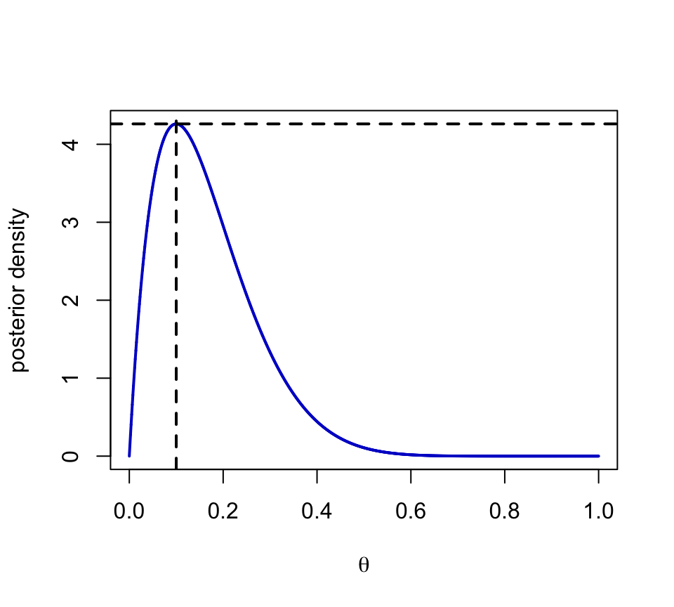 “best” estimate of \(\theta\) is the maximum a posteriori estimate (MAP) or posterior mode