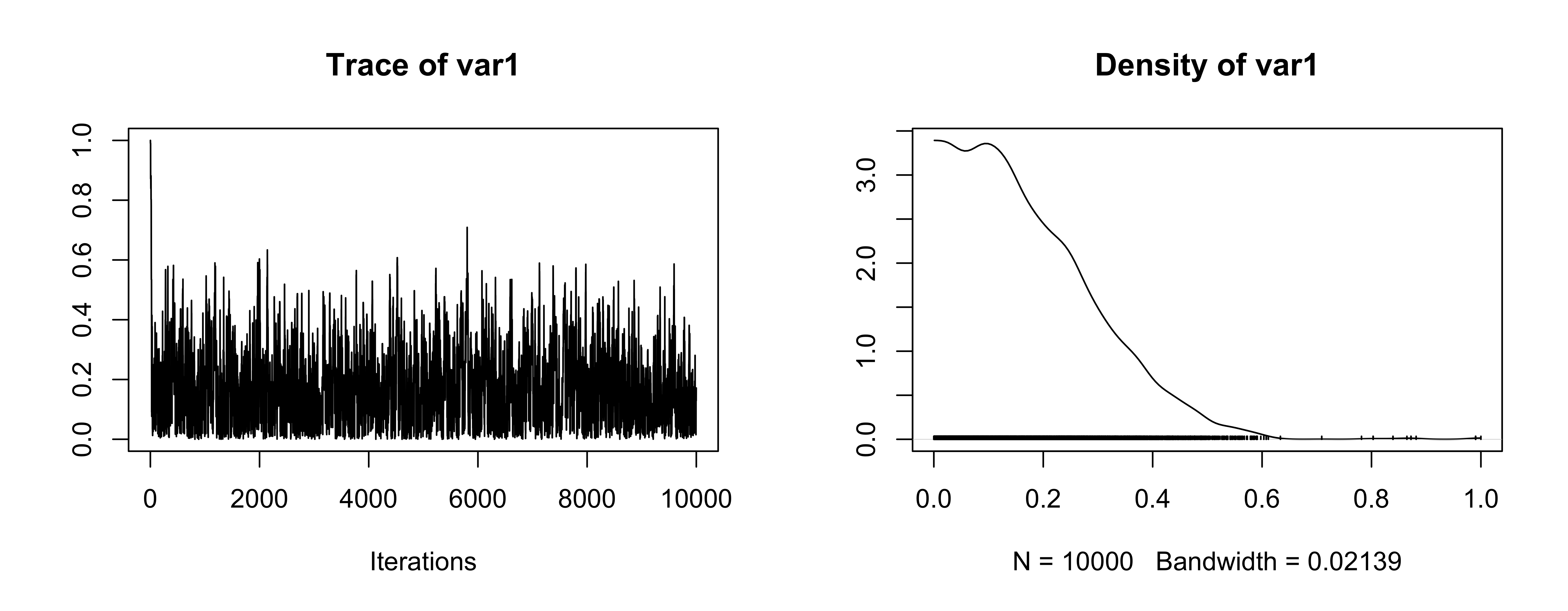 Note: no definitive tests of convergence but you should do as many diagnostics as you can, on all parameters in your model.